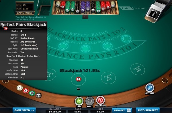 Based on the hole-card version of Blackjack, Perfect Pairs Blackjack is very similar to the Atlantic City and Vegas